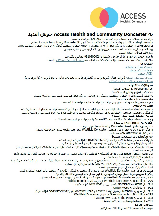 Home / خوش آمدید Access Health and Community Doncaster ب